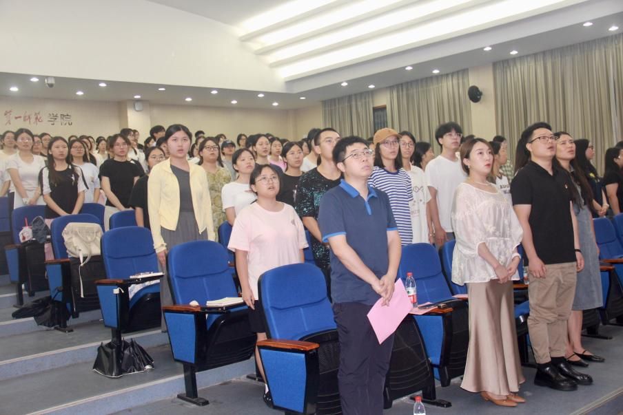 仪式开始,主持人戴建宇介绍与会领导、老师。在热烈的掌声中,全体人员庄严肃立,齐声高唱《国际歌》,铿锵有力的旋律回荡在会场,正式拉开了本次开班仪式的序幕。