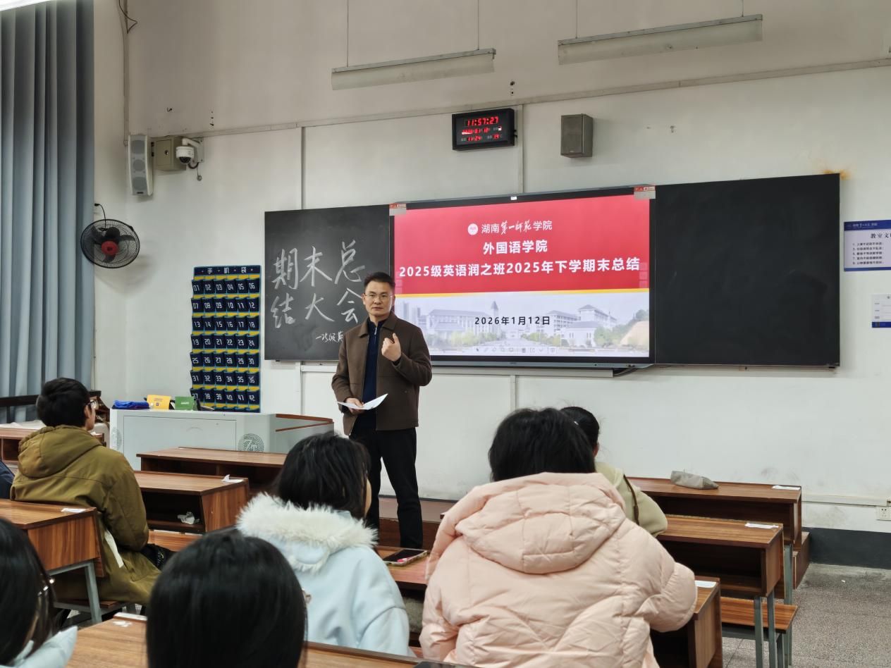 为系统梳理学期工作成效,科学指导学生假期学习与生活,2025年1月12日,88看球(中国)官方网站 2025级英语润之英才班于城南校区召开“班级学期总结及寒假学业指导会”。学院副书记兼辅导员戴建宇、班主任蒋倩博士出席指导,与全体同学共同围绕学期成果回顾、寒假任务部署与学业规划展望三个维度展开交流。本次班会既为本学期工作画上圆满句号,也为新阶段的成长蓄力启航奠定了坚实基础。