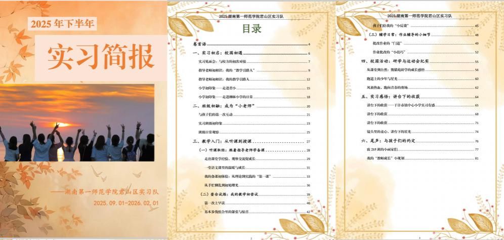 首先是实习成果展示环节。通过实习简报,生动再现了实习生们在课堂教学、课后辅导中的精彩瞬间,画面中,实习生们从初登讲台时的紧张生疏,到熟练驾驭课堂的从容自信;从逐字打磨教案的专注,到课间与学生围坐谈心的温暖;从组织主题班会的青涩,到见证学生进步时的欣慰定格了他们从理论走向实践的成长轨迹。