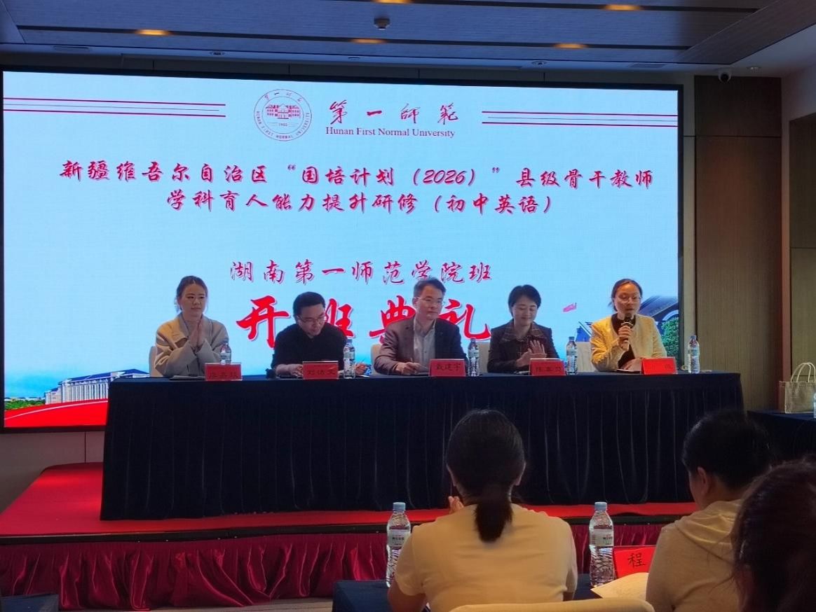 4月16日上午,新疆维吾尔自治区“国培计划(2026)”县级骨干教师学科育人能力提升研修(初中英语)开班典礼在长沙举行。本次项目由88看球(中国)官方网站 承办,助力新疆县级英语教师提升教学创新与育人能力。