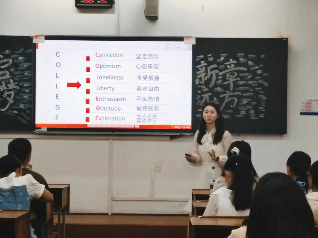 蒋倩老师还向同学们提出殷切期望,并布置了一项特别任务——撰写“大学四年成长目标书”,旨在引导同学们尽早明确方向,以规划促行动,书写充实而精彩的大学生活。她鼓励大家以积极心态面对未来挑战,保持内心的从容与开放,在变化中成长,在磨砺中坚强。