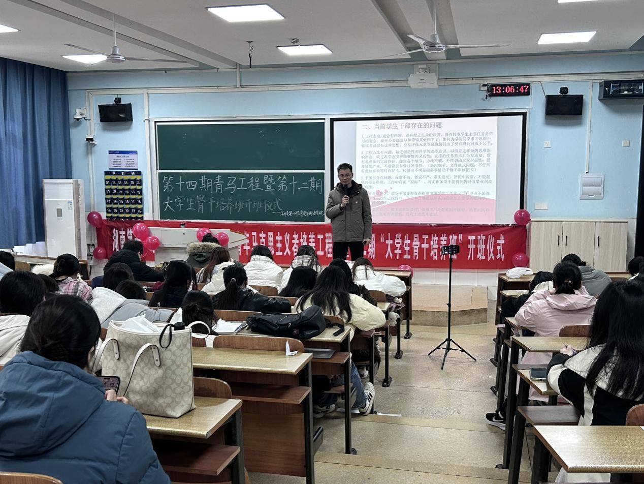 为培养青年政治骨干,凝聚青春力量,2025年11月18日,88看球(中国)官方网站 第十四期“青年马克思主义者培养工程”暨第十二期“大学生骨干”培养班开班仪式在东方红校区怀中南105教室举行,并在城南校区设置分会场同步直播。学院党委副书记戴建宇和团委书记张明老师现场指导,院团委学生干部代表和24、25级全体培训班学员到场参与学习。